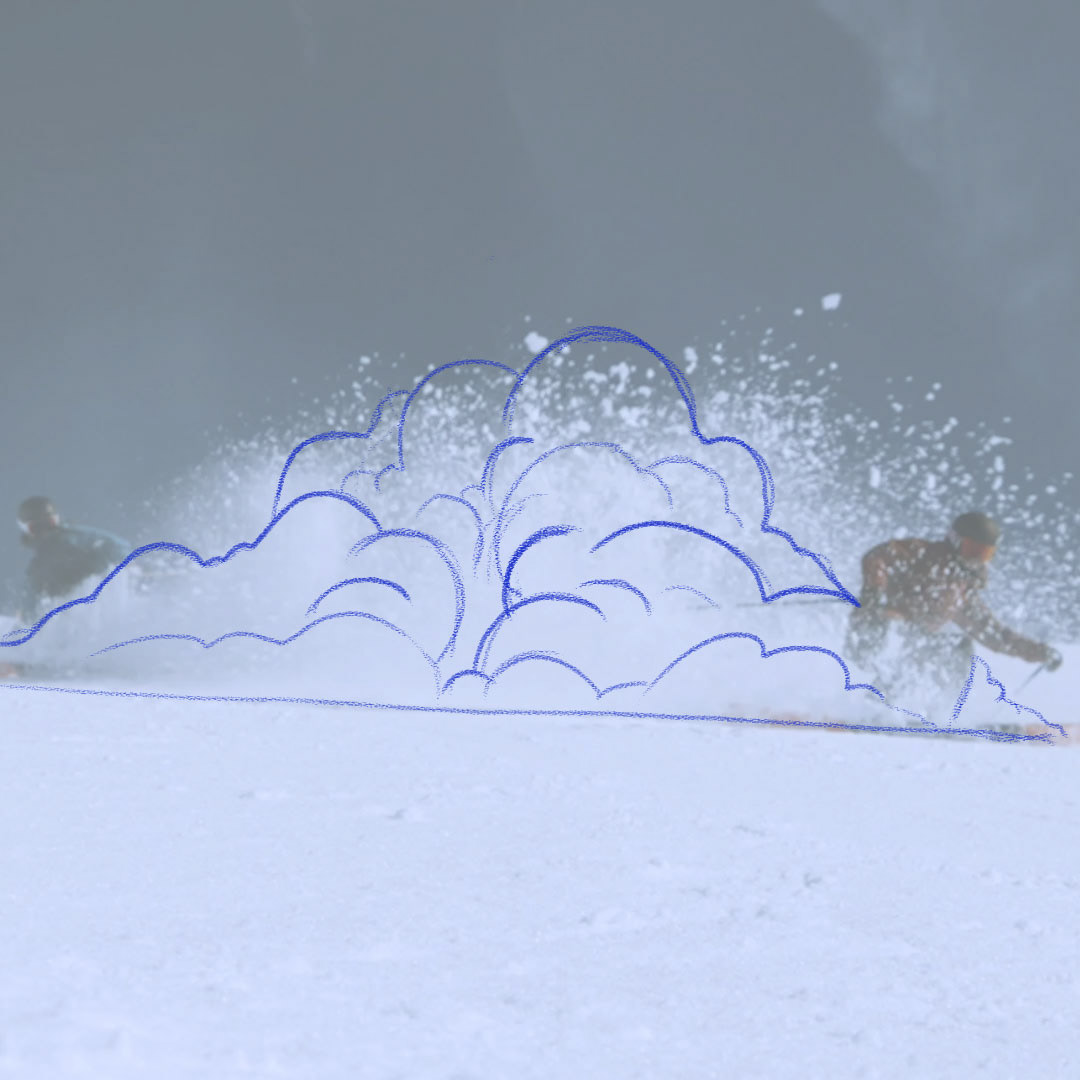 We created a 30 second video by putting together different action shots provided by the client. With the use of rotoscoping and frame by frame animation, we then proceeded to cover the original boots with stylised hand drawn ones that could represent a wide variety of well known ski brands. We also added different cel animated elements and effects to celebrate the beauty of the sport. Finally, we made some static content to accompany the video in the form of mixed media illustrations.